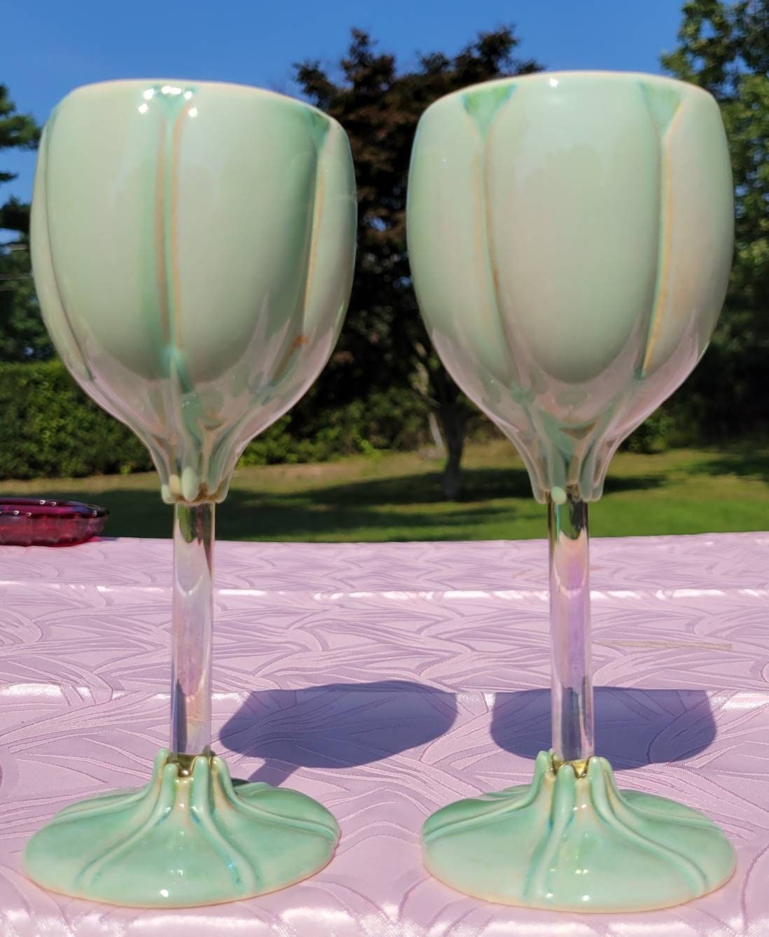 Buy Pair Ceramic Tulip Botanical Form Water Goblets Wine Online In India Etsy